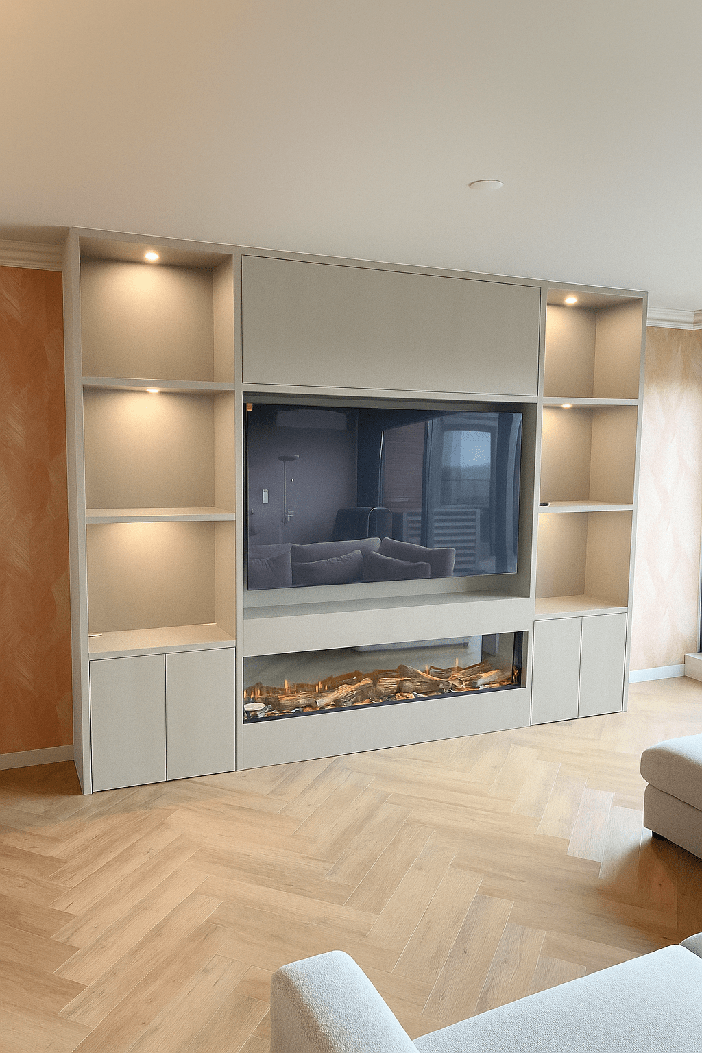 - Functionaliteit en esthetiek: Naast de esthetische waarde biedt een Cinewall praktische opbergruimte voor apparatuur zoals tv’s, soundbars en consoles.